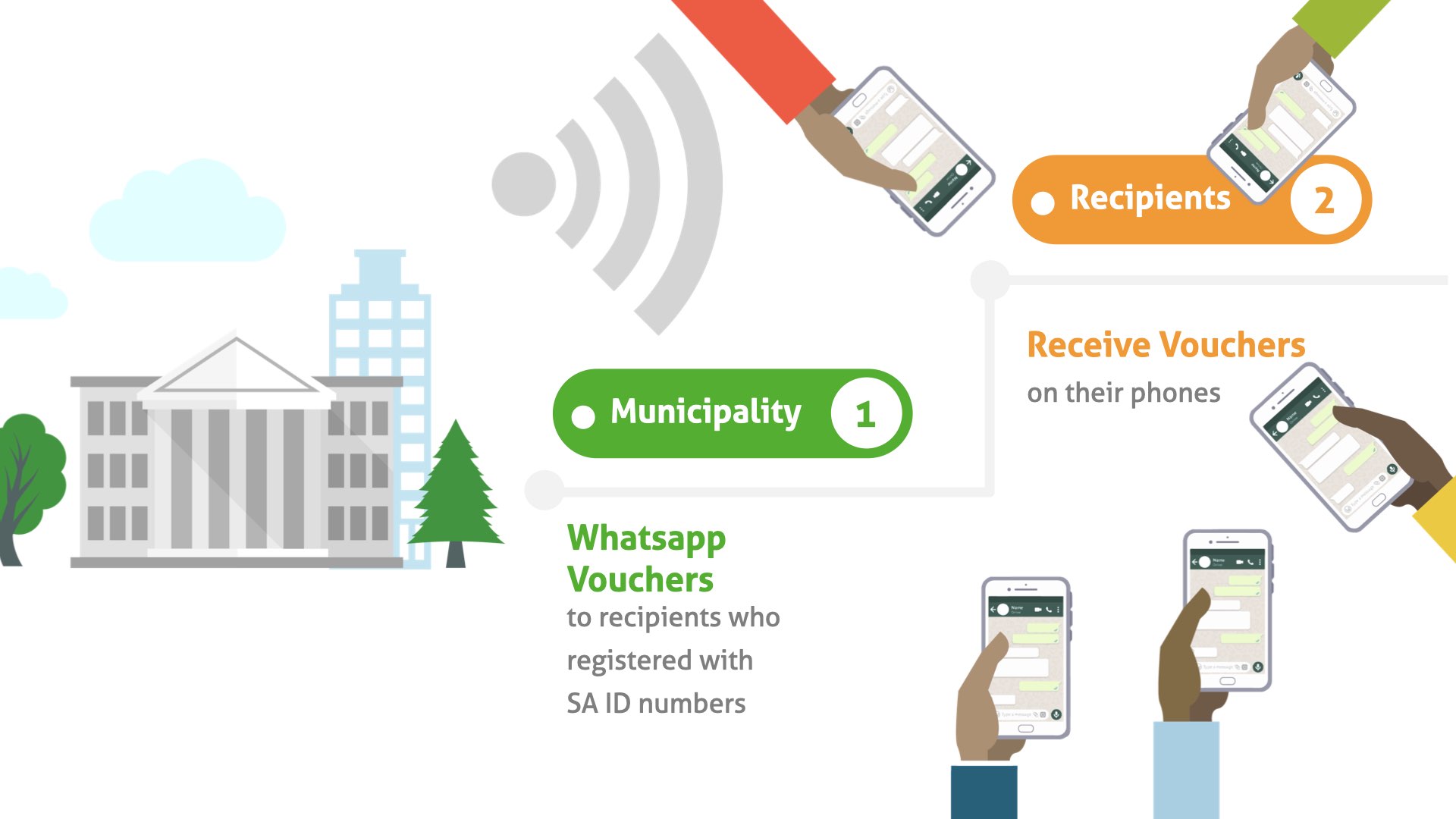 An e-Voucher is send directly to a recipient's phone. The person can collect their food parcel from the local spaza shop selecting from a list of approved items. Providing them choice and dignity.